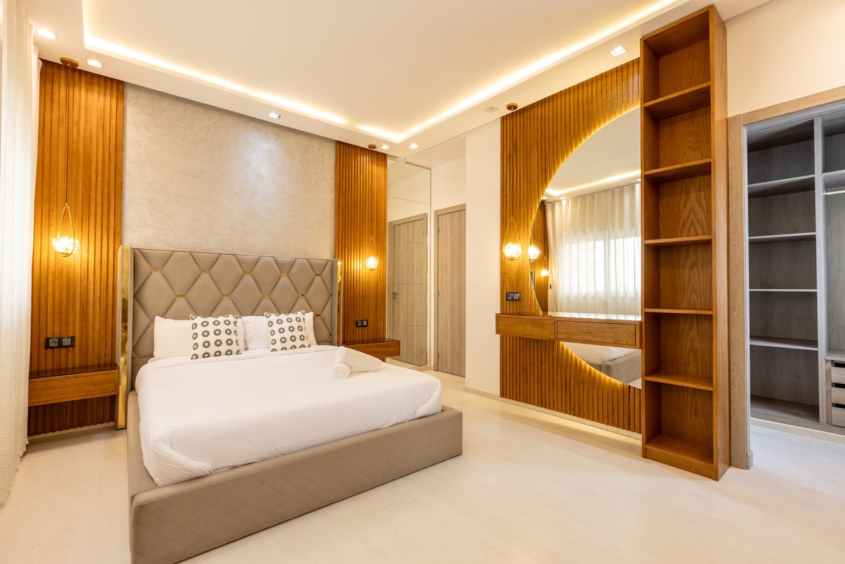 Pour vous, nous avons créé ce MAGNIFIQUE appartement 1 chambres AU BORD DE PLAGE. Profitez d'un LUXUEUX séjour dans notre appartement VUE MER raffiné et confortable idéalement situé à TANGER PLAYA, devant la plage AL GHANDOURI et les réputés cafés RRICE et LA VUE. Sa décoration a été pensée pour que vous y soyez COMME A LA MAISON, mais en mieux ! Le tout dans une résidence FAMILIALE avec PISCINE, PARKING et JARDIN fleuri. La résidence est SECURISEE 24h/7.