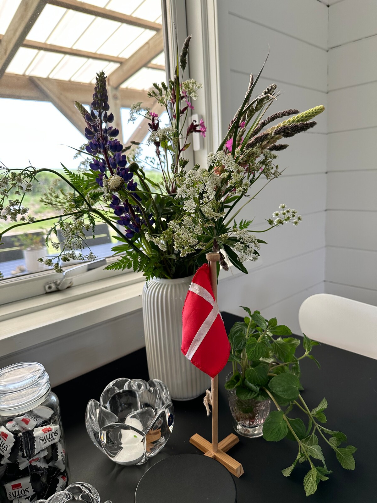 Relax in this unique and scenic cottage with panoramic views of the water, Toftum Bjerge and the small harbor in Remmerstrand. The different ceiling heights and intimate spaces create a charming and cozy atmosphere in the old fisherman's house. Towards the water, there is an orangery/sun room and a terrace with a private path directly down to the beach. The house also has a covered terrace with outdoor kitchen, where you can cook your dinner on the grill or enjoy the sunset in the evening.