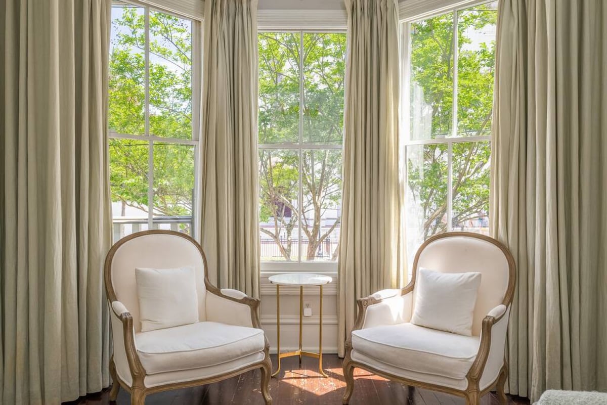 The Salon is a large and gracious residence overlooking famous Jones Street in the heart of the historic district. At an impressive 1,400 square feet, this beautiful offering is the largest of all 4 lodgings at 120 West Jones Street, encompassing the entire 3rd floor of the house. The Salon has retained its historic character, including original heart-pine floors and elegant molding, while being tastefully updated with modern conveniences. SVR-01495 For concierge service visit 120WestJones.com