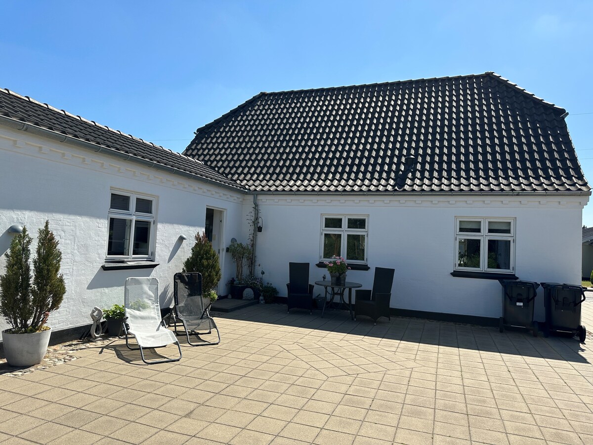 The house is an old townhouse - completely restored in 2008. Located in the center of Dronninglund, close to shopping. There is a lovely courtyard with a covered terrace. There is plenty of beautiful nature in the area with forest, lake and only 7 km to the beach in Aså. The house is 169 sqm and on 2 floors. I have 2 cats and 10 chickens, which need to be looked after by the people staying in the house. The cats can run in and out of the house. The chickens just need to be let in and out. And then, of course, you just have to fill up with food for them if needed.
