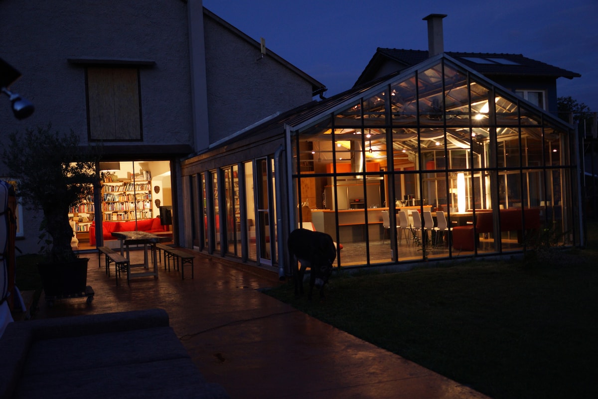 In unserer mit Liebe sanierten und eingerichteten Gästesuite am Waldrand kommst Du zur Ruhe. Hier ist der richtige Ort zum Lesen, Schreiben, Meditieren, Kochen, zum Sternegucken, Pilzesammeln (Dörrautomat vorhanden) Hühnerfüttern, für Lagerfeuer, Waldspaziergänge und Tierbeobachtungen. Wer eine Zeit lang abschalten und die Natur genießen möchte, ist hier richtig. Der Ort eignet sich auch gut für etwas längere Auszeiten, etwa um ein Buch zu schreiben.