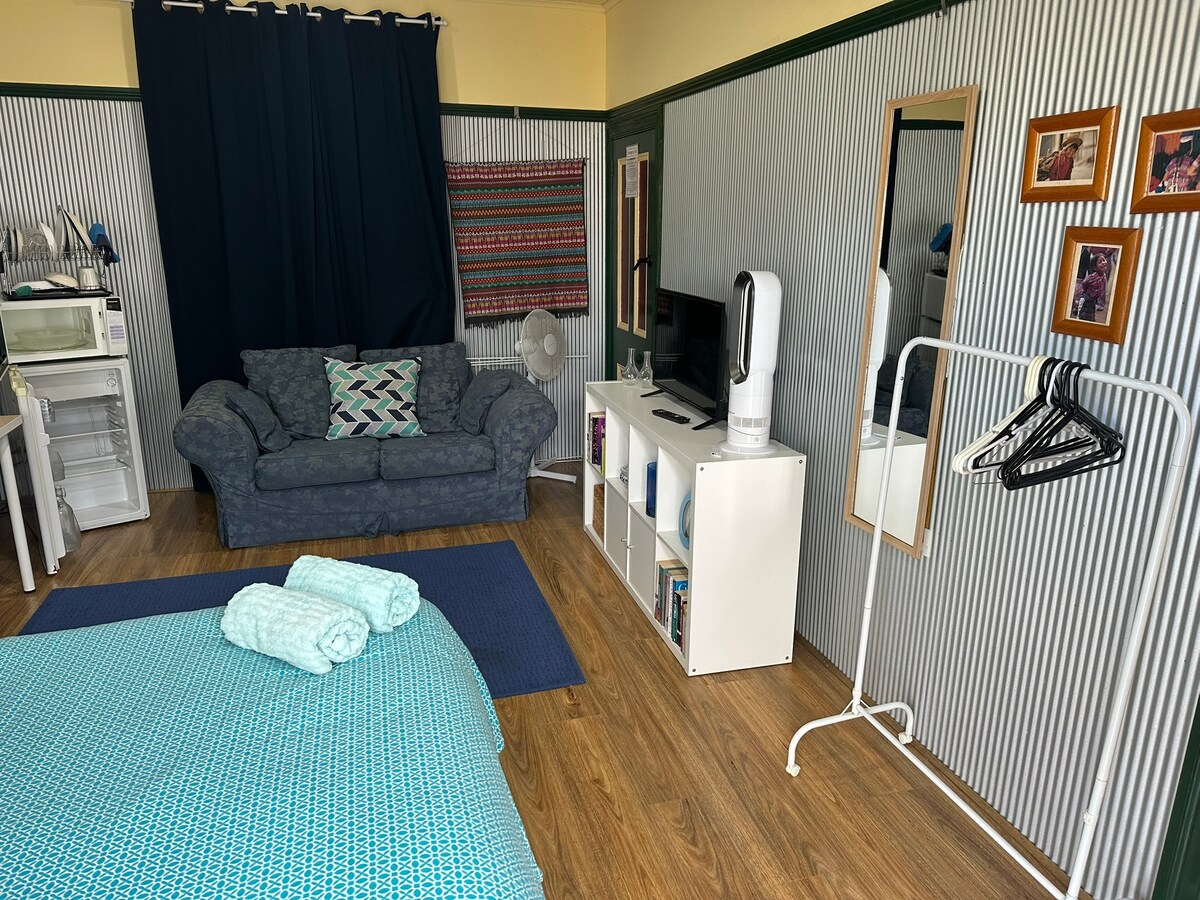 The Little Garden Pod is your own independent private oasis set at the rear of a beautiful & established garden It’s a heavily insulated bedroom with HD Google TV, Netflix, WiFi, reverse cycle split system, Ikea Poang chair & Queen size Murphy bed which converts into a wall mounted breakfast table Perfect as a base for a few nights while in town for work or to simply enjoy exploring the area. The view from the pod is a lovely established garden. Access is external via the driveway & garden