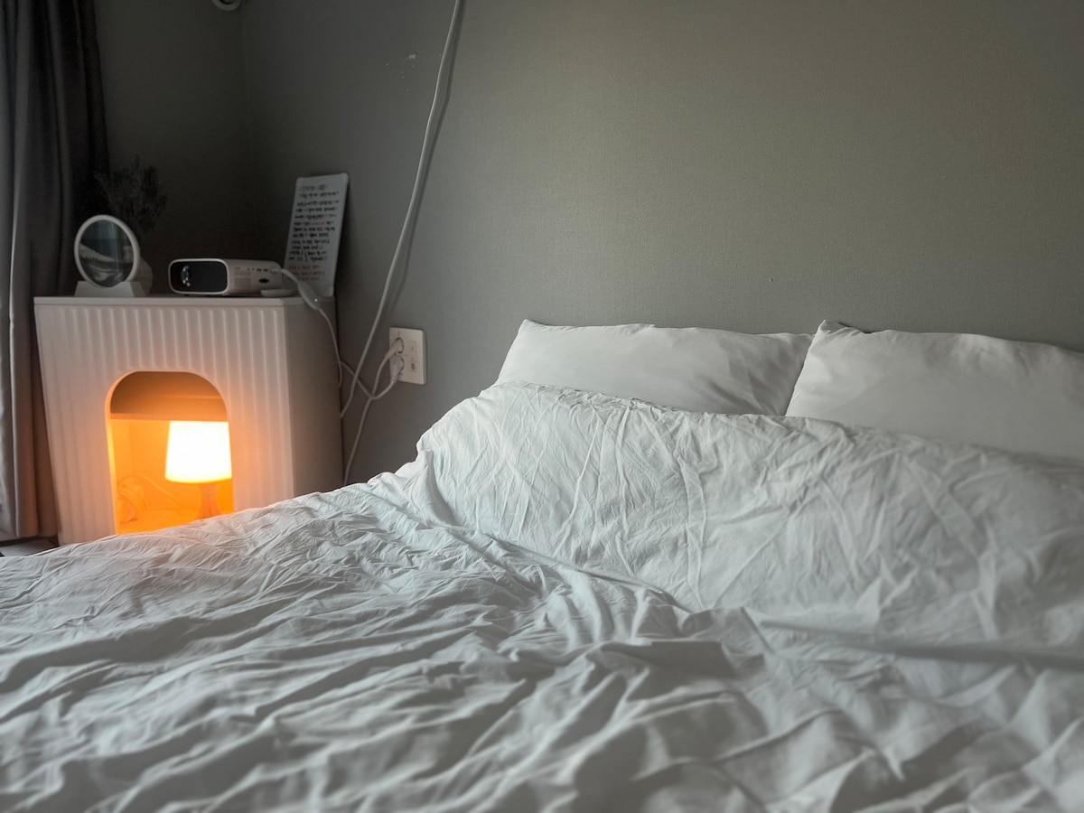 Quiet mountain retreat | Clean studio | Late check-out | BBQ available | Recommended for couples | Near Sanglim Park