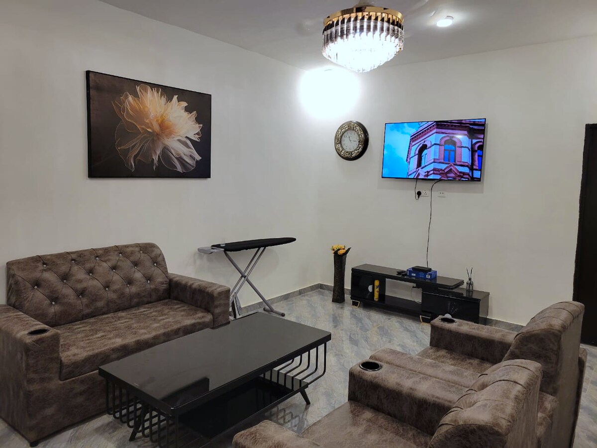 Welcome to our modern, spacious apartment, designed for comfort and convenience. Every detail ensures a relaxing, enjoyable stay. Cozy beds and peaceful living areas invite you to unwind, while the fully equipped kitchen makes meal prep easy for short or long visits. Both living room and bedrooms feature air conditioning, with ceiling fans throughout. Enjoy reliable water, gas, and power with on-site backup generators. Experience comfort and ease—your perfect home away from home.