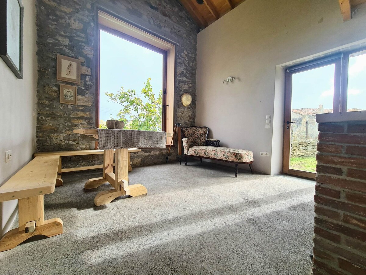 The authentic experience of an unspoiled rural space.This 1900 converted barn is located in Potamos, a historical village of the XII century. It is hidden in a peaceful 2 acres farm, overlooks the main square, the church and the town hall of the village. Its structure is made entirely of stone with exposed beams on the ceiling.Inside, a glass wall can be fully opened to nature to welcome the outside in. Near yet far from the hustle bustle it is only 5 minutes from village center & 7 km from sea.