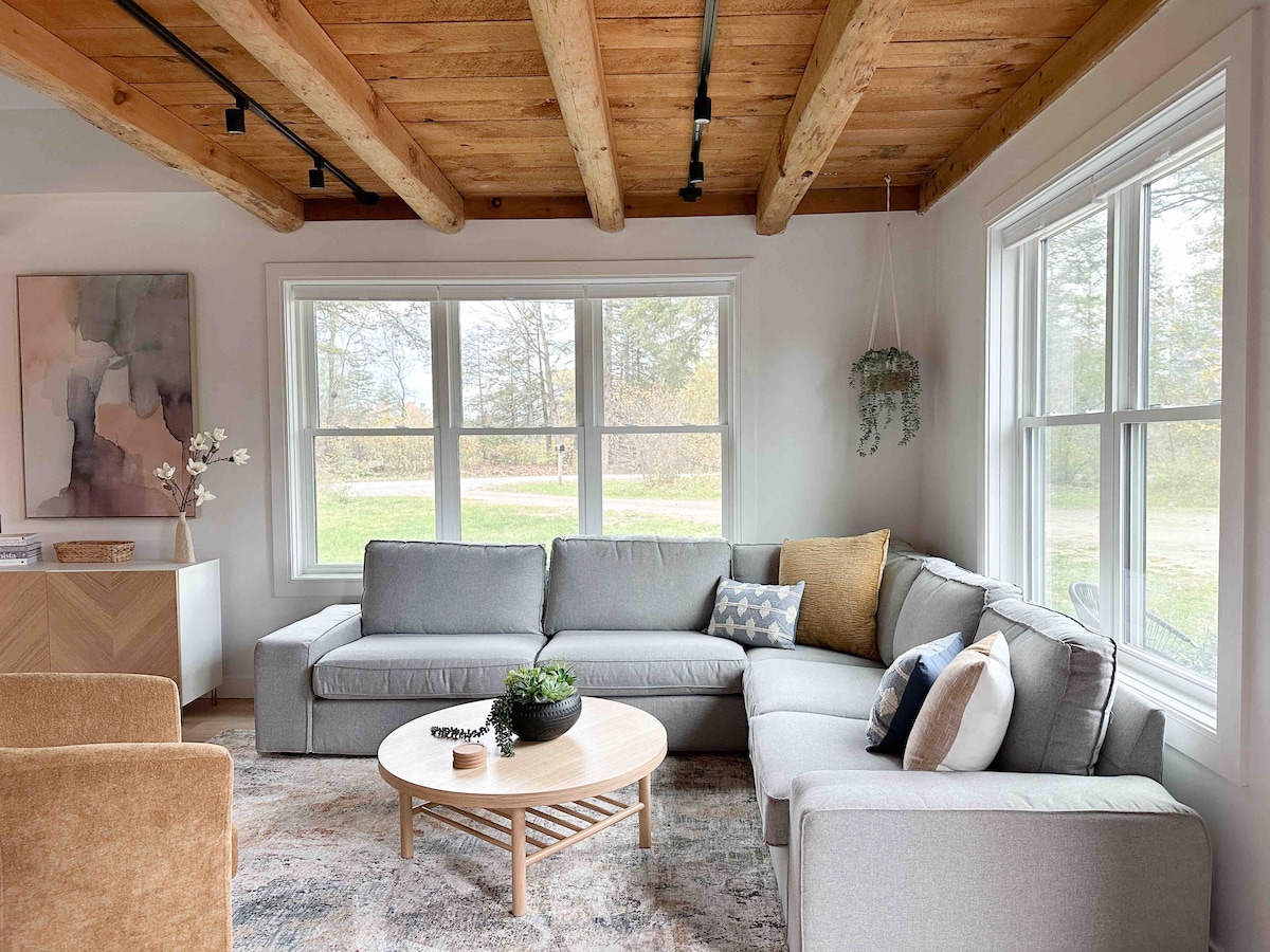 Newly renovated home in the Northeast Kingdom with massive windows overlooking the forest. Scandinavian, minimalist style with comfortable high-end mattresses and large sectional sofa for the whole family. Two bedrooms, each with a king bed and twin trundle for sleeping flexibility. You’ll love this quiet getaway located on a dirt road 5 mins to the world-renowned Kingdom Trails network and 10 mins to Burke Mountain.