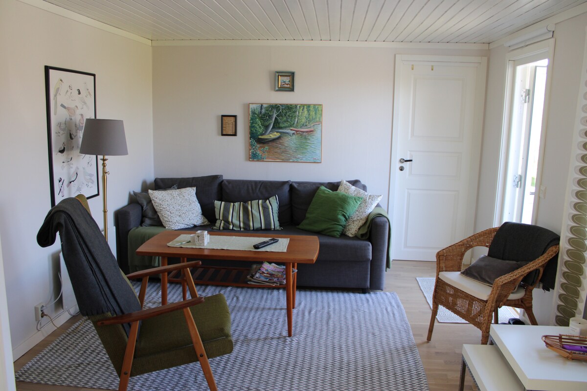 Take a break and unwind at this peaceful oasis. Only 50m to white, lovely sandy beach. Guest house of 45 sqm on one of Blekinge's best sandy beaches. The cottage has a bedroom with a double bed that is 160 cm and also a sofa bed for 1 person in the living room. Shower, toilet and washing machine. The cottage is equipped with a small kitchen that can accommodate most things such as fridge/freezer, stove, microwave, coffee maker, toaster, etc. Large wooden deck with lovely morning sun. Patio in evening sun, barbecue. Sun beds, beach chairs, bicycles.