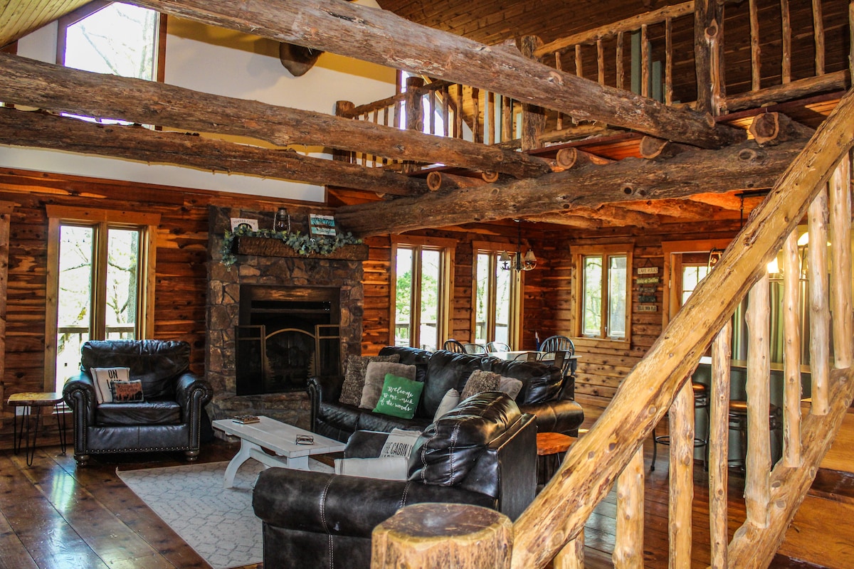 Unplug and unwind at The Cabin at the Cove. This cabin is the ultimate get away, from the covered porch, fire pit and wood stove, to the scenic views and cozy interior. This log cabin has tin roofs and will not disappoint. This cabin is off the beaten road, but don’t worry, it has all the modern amenities. There is access to a private cove less than a half mile away where you can drop a boat in, fish, and swim. There is no WiFi in this cabin.