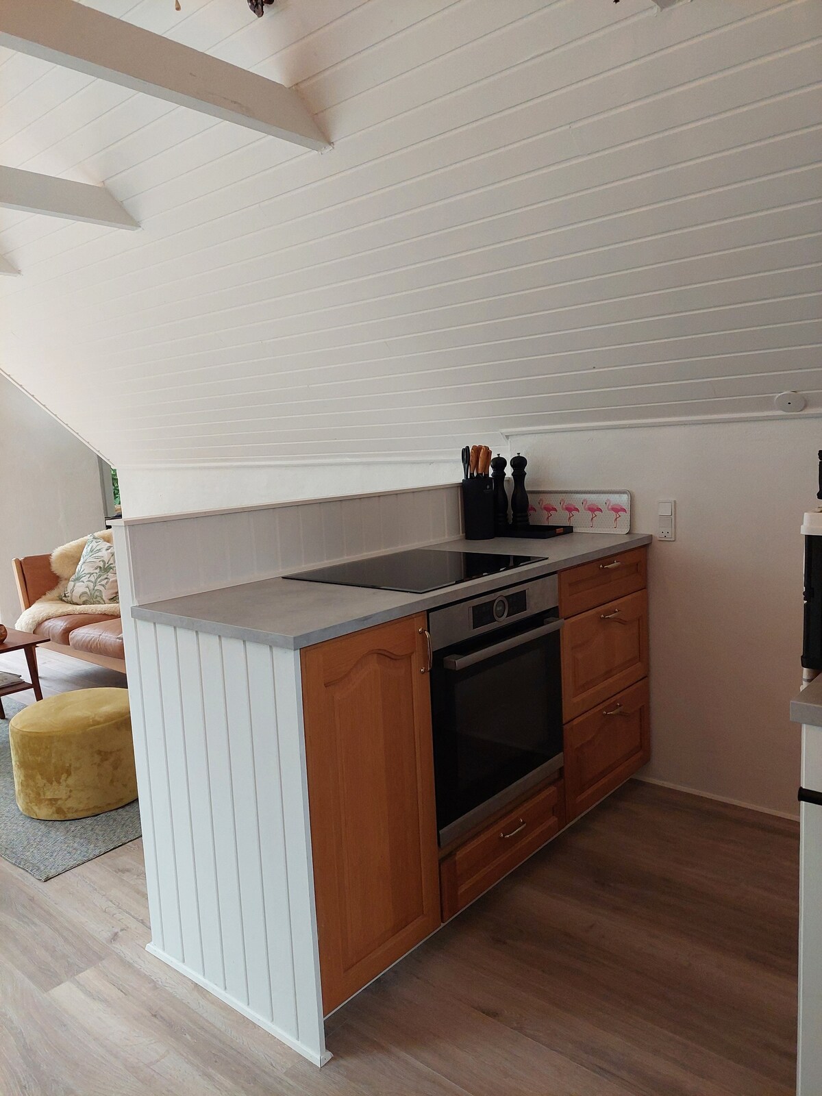 We have a lovely Bed and Breakfast apartment with space for coziness both indoors and outdoors. You get your own kitchen, bathroom, living room, bedroom and if you have an electric car, you can charge it with us. The apartment has its own entrance to a beautiful garden with the possibility of both entertainment and relaxation. You will find everything from garden furniture, hammock and outdoor activities in the form of games and a trampoline. There are several cozy nooks that you are welcome to use, just as there is a Mexican fireplace and barbecue in the garden. Free parking in front of the house.