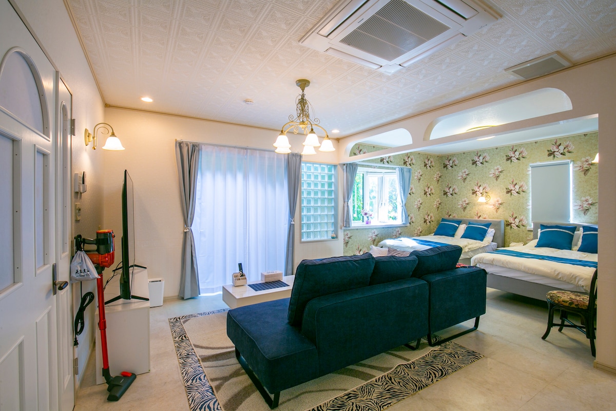 The charm of our facility lies in its beautiful Japanese garden and English garden. It is especially recommended for those who love nature. The guest house was built in 2014 on the grounds of an old residence. In one corner, we created an English garden, reminiscent of our time living in England. Meals are not provided. There are no restaurants or shops nearby, so please make sure to do your shopping in advance before you arrive.
