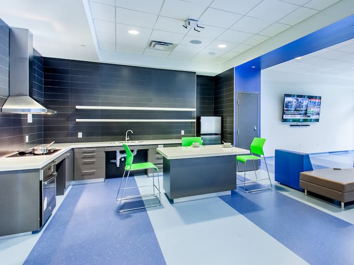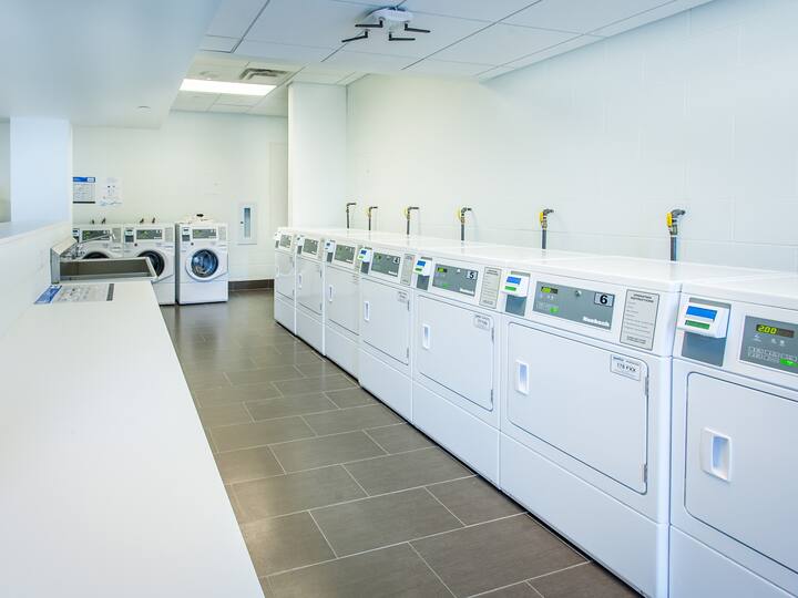 Our modern suites feature large windows, full sized double XL beds, and a 3 piece bath and kitchenette finished with Corian countertops and stainless steel appliances. Common spaces include a 2nd floor patio with BBQ, lounges with full kitchens, a games room, fitness centre, and complimentary Wi-Fi throughout the building. Being an ideal hotel alternative with nearby parks and green space, you can sleep peacefully knowing it’s one of the most affordable options in Toronto.