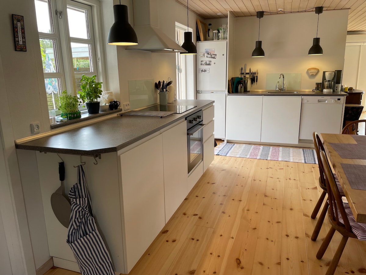 - NOT suited for groups of young people on vacation - The house sits on a quit plot with lots of space inside and out, to appreciate time with family and loved ones. Sleeps 6 in total (2 bedrooms with double beds + large sofa bed in the living room). Brand new kitchen equipped with an oven, Nespresso machine, microwave, washing machine, kettle, fridge/freezer, blender, toaster, and more. Less than a 5-minute walk to one of Denmark’s most beautiful beaches.