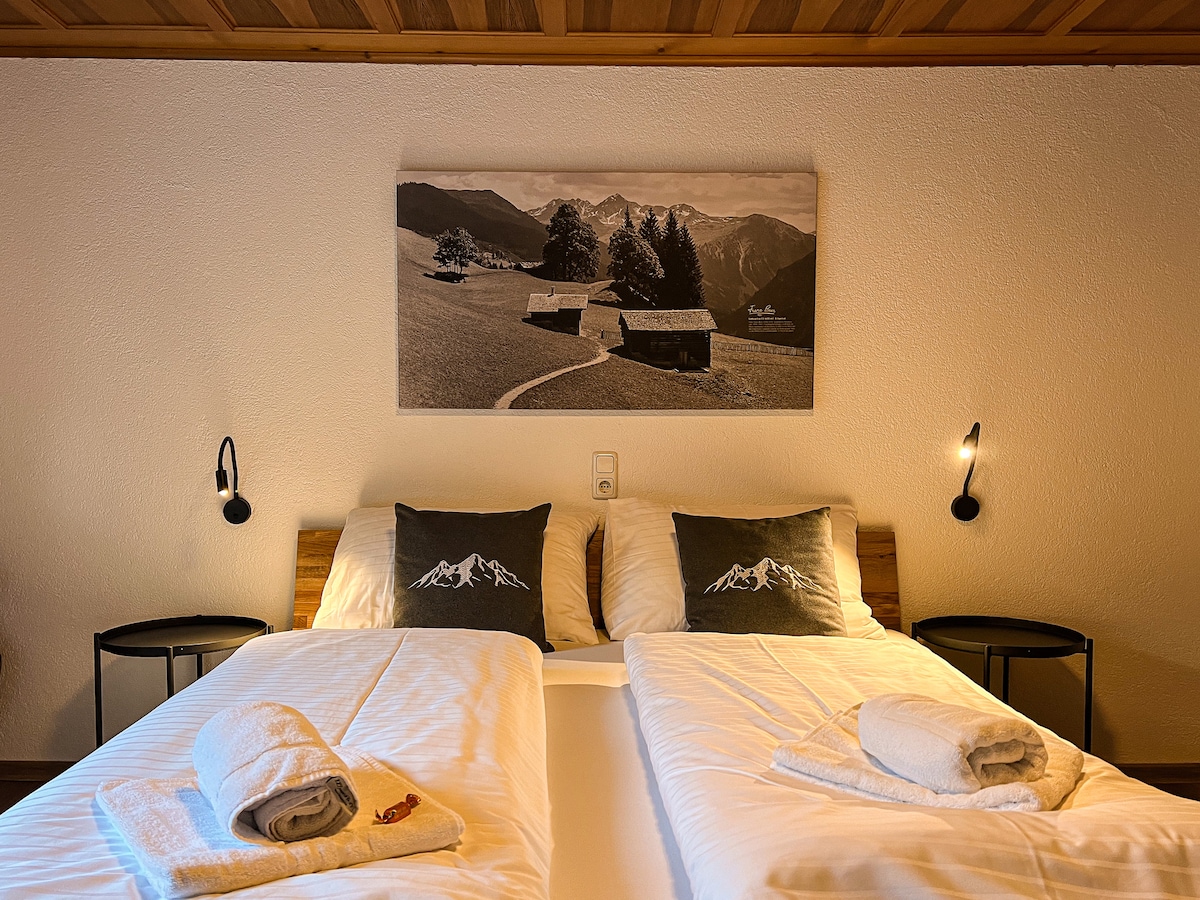 Through large panoramic windows you can be tickled by the sun as you wake up and watch the moonlight in the evening with a glass of wine. Enjoy the breathtaking mountain panorama from every room, which you can only get with us! The "all inclusive" apartment for 2 to 6 people is integrated into our modern wooden construction. We look forward to the visits of new people as well as old friends and are available to all guests with advice and assistance in planning and implementing tours!