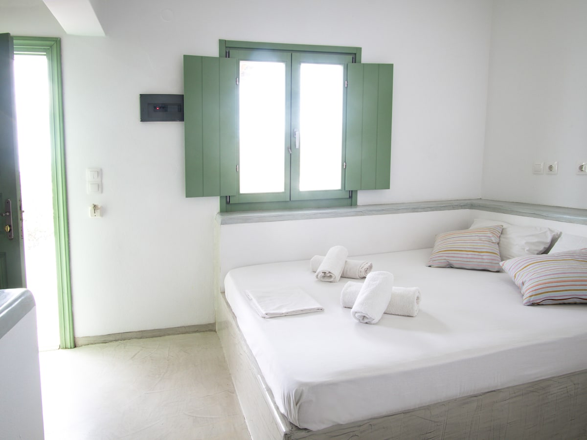 PROPERTY COMPLIES WITH ALL AIRBNB COVID-19 REGULATIONS!! A brand new Studio Apartment located in the graphically beautiful Hellenic island of IOS in the Cyclades complex. The studio resides in the kampos area near the port of Ios and is a 5 minutes walk from the amazing blue flag awarded Yialos beach. It has a spacious and breezy porch with a large built in dinning table and built in couch for you to organize amazing summer dinners or just relax in the summer breeze with your company.