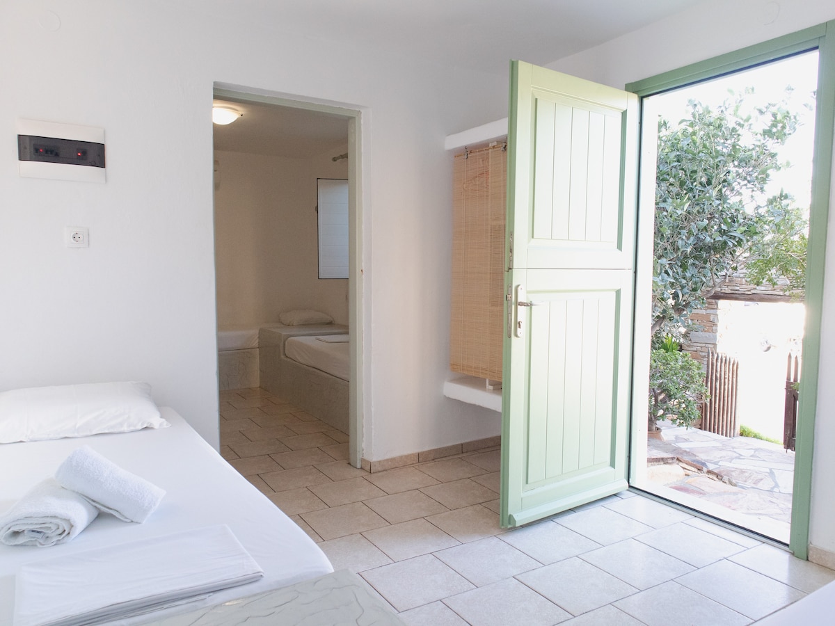2 houses (with airco and wifi) in typical Cycladic style, surrounded by rocks, beautiful almond trees, pine trees and olive trees. Just 800 m. away from the most popular Mylopotas beach and with scooter or car 5 min. from the village. Nice quiet area, 100 % privacy guaranteed with ocean view, beautiful sunset and fantastic starry nights. Suitable for max 6 persons Mentioned price is for the houses together. Come & enjoy IOS !