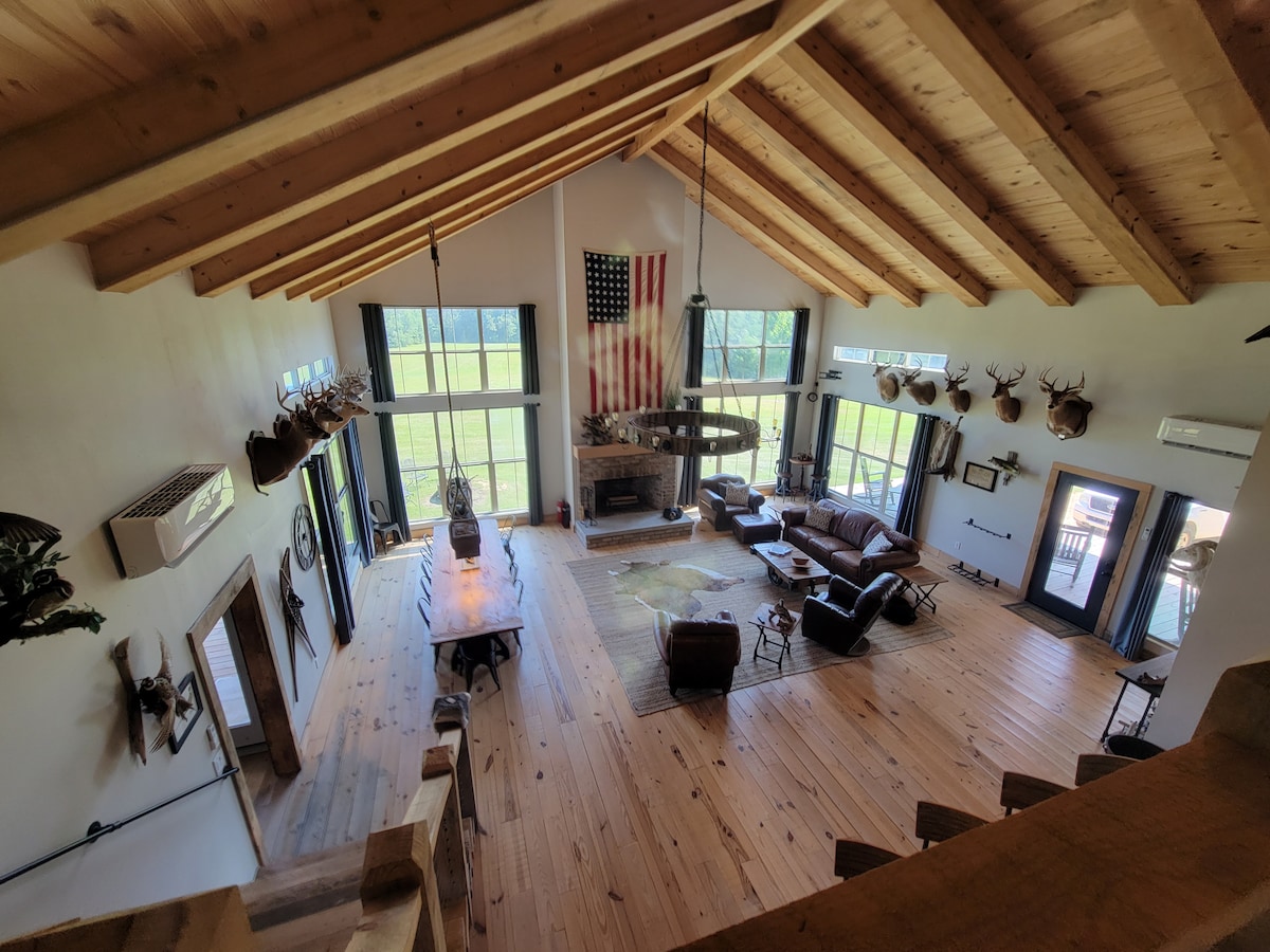 This Beautiful Rustic Industrial Lodge is perfect for group trips. Located approx. 35 minutes form historic Natchez, Ms.