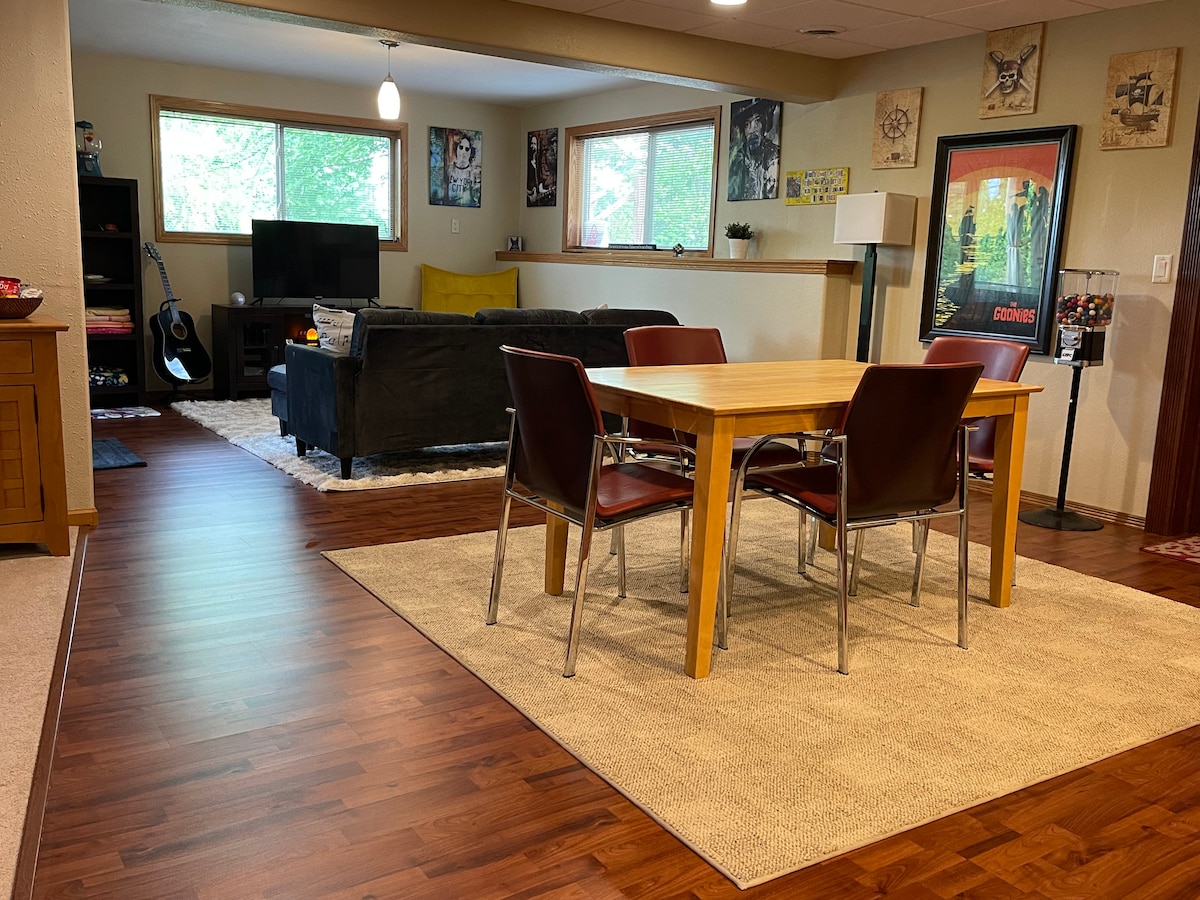 Enjoy the entire garden level of our home. 2 Well appointed Queen Bedroom Suites. Generously stocked kitchenette allows for snack prep. Home Gym, Living room w/Smart TV, Free Arcade 1999 Golden Tee, Partially fenced yard & 7 person Jacuzzi. Spa quality amenities in the private bathroom. During your visit none of the lower living area is shared with us or other guests. *We live on site and it’s possible you may have noise, like music, laughing or dog greetings during your stay.
