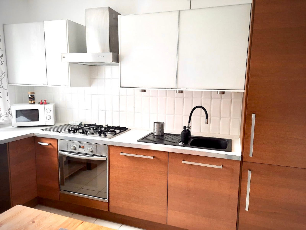 We invite you to a comfortable, quiet and cozy apartment located in a quiet, well-connected district of Kraków-Żabiniec. The apartment is located on the first floor overlooking a secluded garden. It consists of a large separate kitchen, a living room with a large sofa bed, a bathroom with a bathtub and a comfortable bedroom with access to a spacious balcony. The building has an elevator.