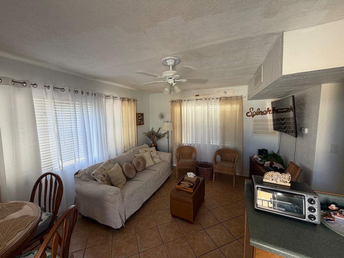 Our cozy Bungalow is for 2 to 4 ppl, and provides you with everything you need to enjoy your visit. In the bedroom is a King size bed and a spa styled bathroom. The living space has a sofa that converts into a queen size bed and a 55” Smart HDTV. The kitchen is fully equipped with new SS appliances, a Keriug coffee maker and comp. coffee. This unit has a personal patio for relaxing and is located in the heart of John’s Pass, steps from the boardwalk/village and a short walk to the beach.