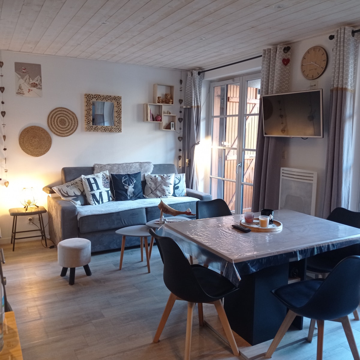 52 m2 apartment on the ground floor, with direct access to an inner courtyard. It is located in the city center, 2 steps from the shops; the tourist office and 10 minutes walk from the thermal baths, mountain view. Free parking nearby. Maximum 6 people but comfortable for 4! Sheets and towels provided, beds are made... (baby equipment, raclette service if needed). 3 beds with 3 beds in 140cms, including 2 bunk beds, quiet!