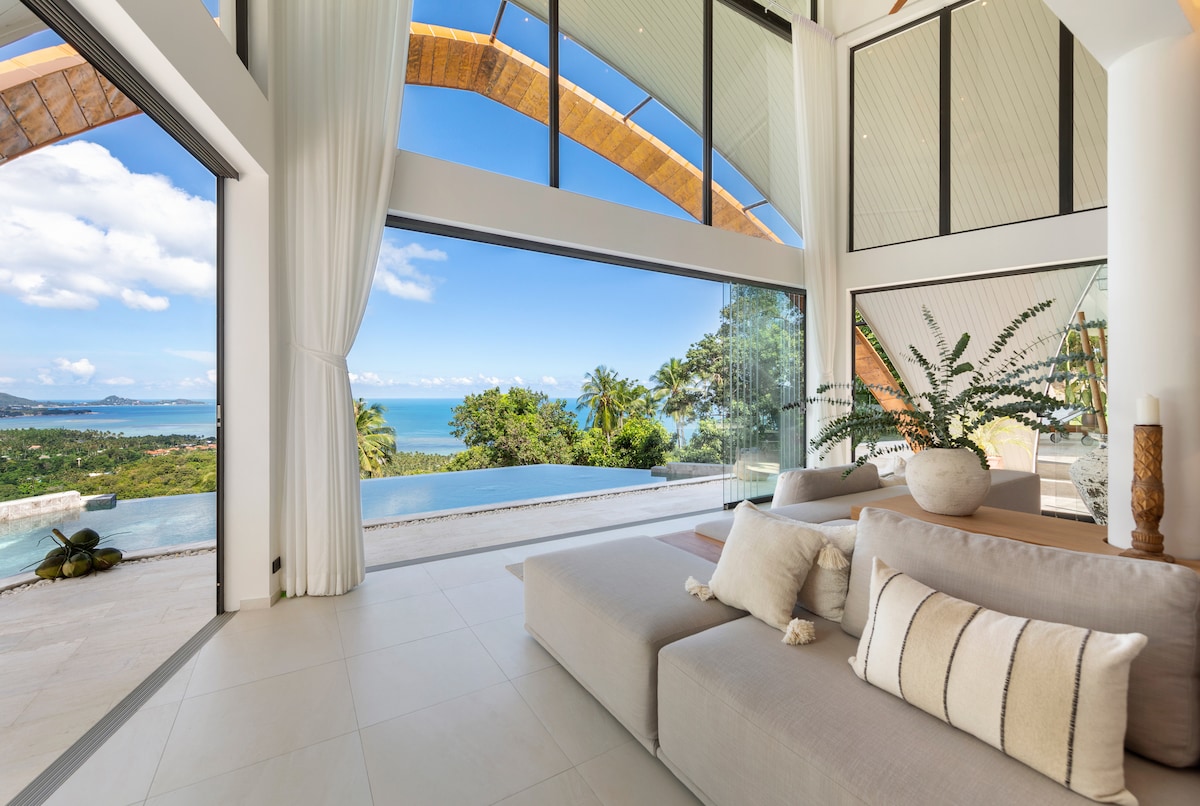 Get Epic pics & stunning sunset views for your Insta. The Z-VILLA was awarded as Best Villa | Contemporary Minimalist/Brutalist Tropical Architectural Design | in South East Asia 2019. Nestled in untouched nature. Private estate on tranquil southwest facing foothills of a coconut plantation. Overlooking the turquoise water of the Gulf of Thailand & Marine Park with it's 42 islands in a 180° unobstructed panoramic Seaview and stunning romantic Sunsets. Guests simply call it the 1 Million $ View.