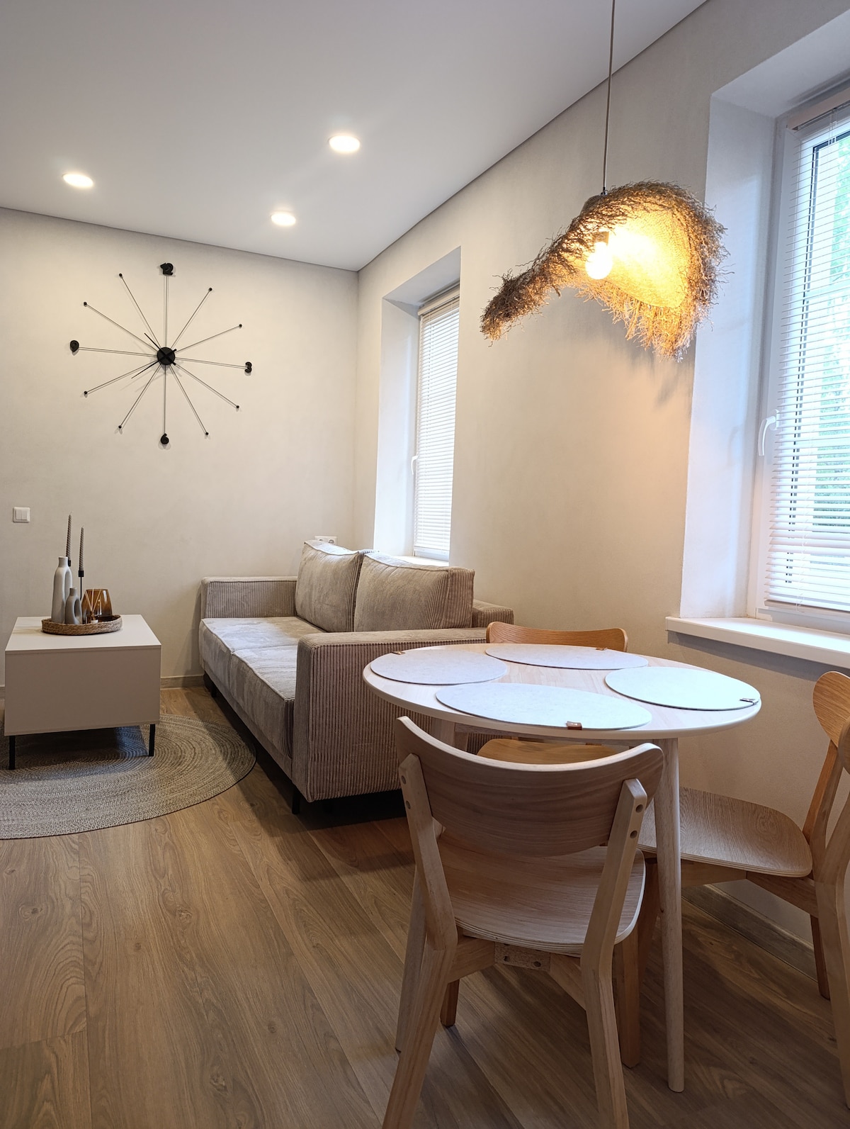 New construction house 41sq/m cozy apartment for 4 people. Once you settle in this central apartment, everything will be within reach of your family. THE APARTMENT HAS: Living room connected to the kitchen Bedroom Shower with toilet All necessary household appliances, Kitchen utensils Internet, Wi-Fi, TV Ironing accessories, dryer Hairdryer Double bed and pull-out corner Sheets, towels Free parking PROHIBITED: Animals Smoking Parties ARRIVAL from 15h DEPARTURE 11h