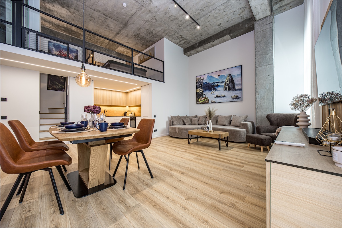 Nestled in the heart of Klaipėda, this modern loft apartment blends comfort and elegance. With expansive windows and a cozy loft area accessed by ladder, it suits those valuing design and a bit of adventure. Unsuitable for very young children due to ladder. it's ideal for families with older children, couples, or explorers looking for a retreat to unwind after a day of city or seaside leisure. The loft has a height of approximately 2 meters.