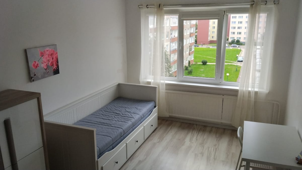 Have a quiet time in our apartment near the park in Klaipeda. Everything is within easy reach here - shopping markets, sports centers, sports grounds, children's playgrounds are within a radius of just a few hundred meters. WIFI is free. Parking is free and the main buses to the city center, the old town, the old and the new ferry run nearby. The apartment has all the necessary utensils, shower gel, shampoo, towels, cooking utensils, and even a fold-away cot for an infant : )