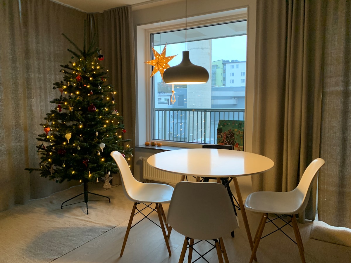 A new renovated modern apartment with all amenities, including a Grand Piano treat the grand piano with care 5 minutes walk from the apartment there is shopping mall, supermarkets, cafes and restaurants. The area is surrounded by beautiful lakes, which are perfect for swimming on a hot summer day. 12 minutes with bus to Slussen (Stockholm centre) where you can reach old town and the Stockholm metro. The bus station is a four minute walk from the apartment and the service is available 24 hours.