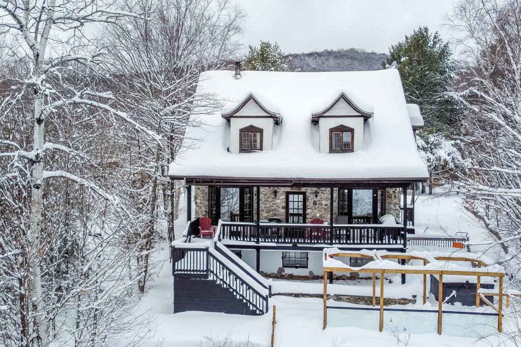 Cottage with exceptional panoramic view 1 hour 15 minutes from Montreal. Private direct river access for swimming, indoor and outdoor fireplace, BBQ, patio, swing and more! Many activities nearby (spa, tree to tree, skiing, snowshoeing, hiking, snowmobiling, quad biking etc.). Also perfect for remote working with high-speed Wi-Fi (fiber optic). Property Number: 227290