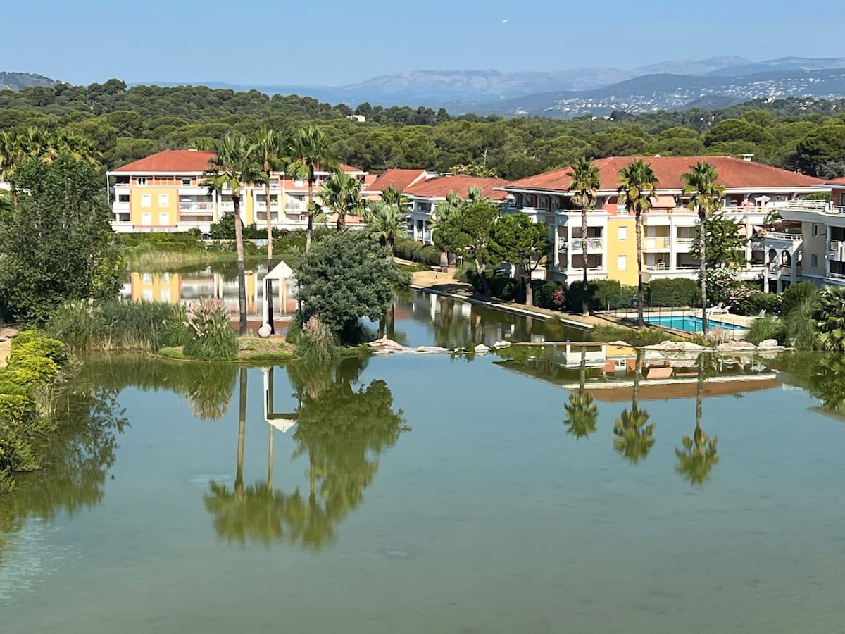 You will stay in an elegant, high-end, Provençal-style building in a comfortable and equipped 45 m2 apartment with a large and wide terrace overlooking the golf course 1 parking space Located around a pretty little lake, with a heated outdoor pool of 600 m2, pond and water jets for children as well as a playground, tennis court, petanque, a wellness area, snack bar (in summer) The beach is only 900 m away! So... Happy holidays!
