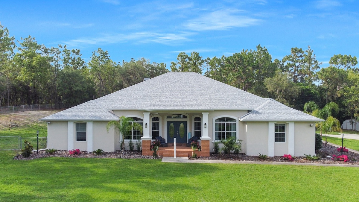 A 100% PRIVATE HOME, Eco solar power, an EV level 2 charger and a FULLY HEATED POOL. Explore old Florida with nature coast attractions that are very close to this location. Explore most outdoor attractions in mid Florida; a 45 min - 1hr drive. Extreme hurricane shutters for a safe home. Kick back and relax by the FULLY HEATED POOL. Newly renovated with sleeping space for 10 people. 3 bed room / 2 bathroom with a day room / 4th sleeping space with 1 futon in the master. Luxury on a budget.