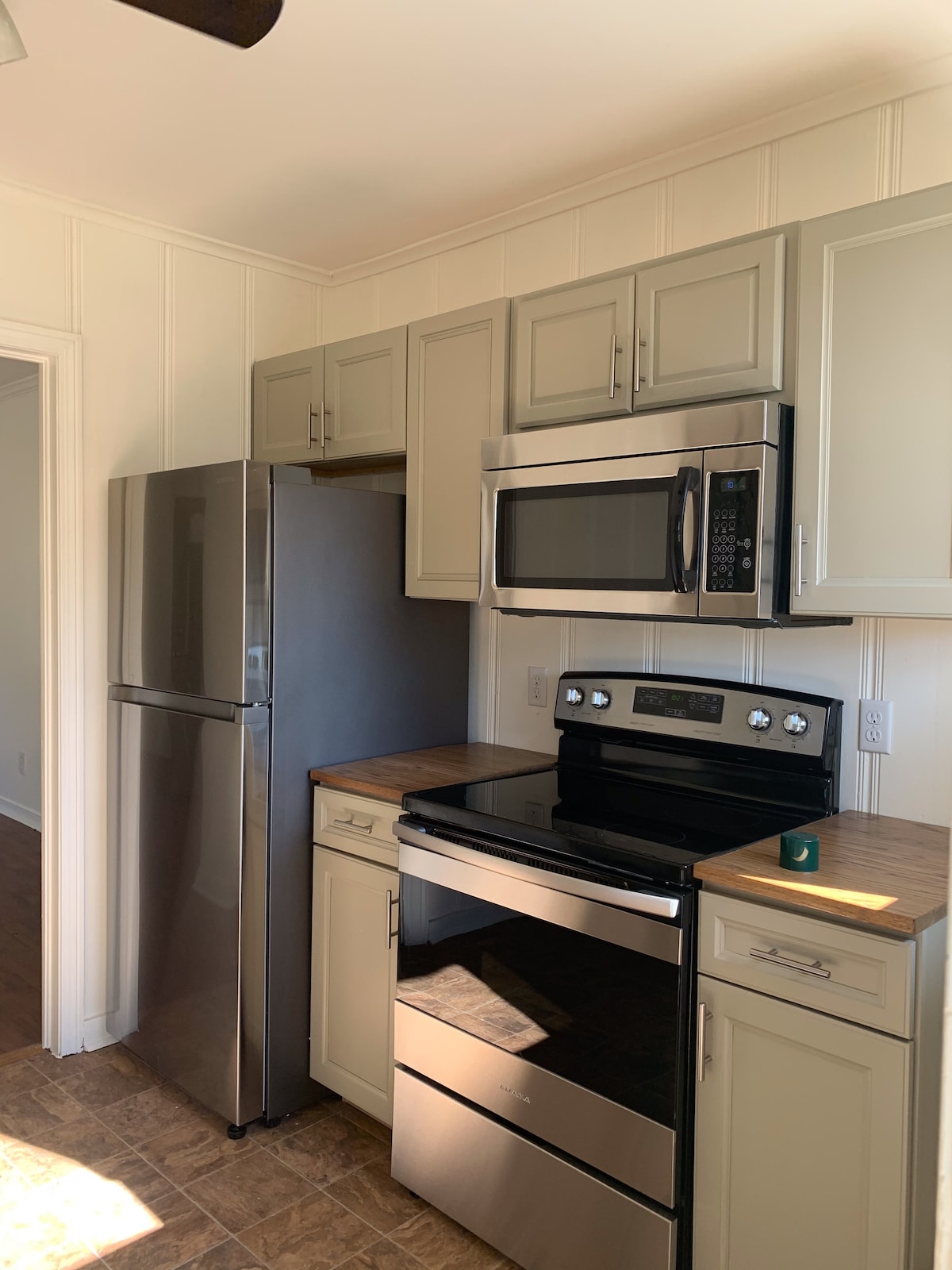 This charming home is set in historic Mill Village. Tucked neatly in downtown Tupelo, it is within walking distance to dining, shopping, arena's & more. Inside you will find a newly renovated space, offering 2 bedrooms with King size beds, TVs & blackout curtains. The kitchen is stocked with basic essentials such as dishes, cookware, and utensils. Coffee/tea, sugar and cream are provided as well. The Living Room is a cozy space with a TV and electric fireplace. please read house rules