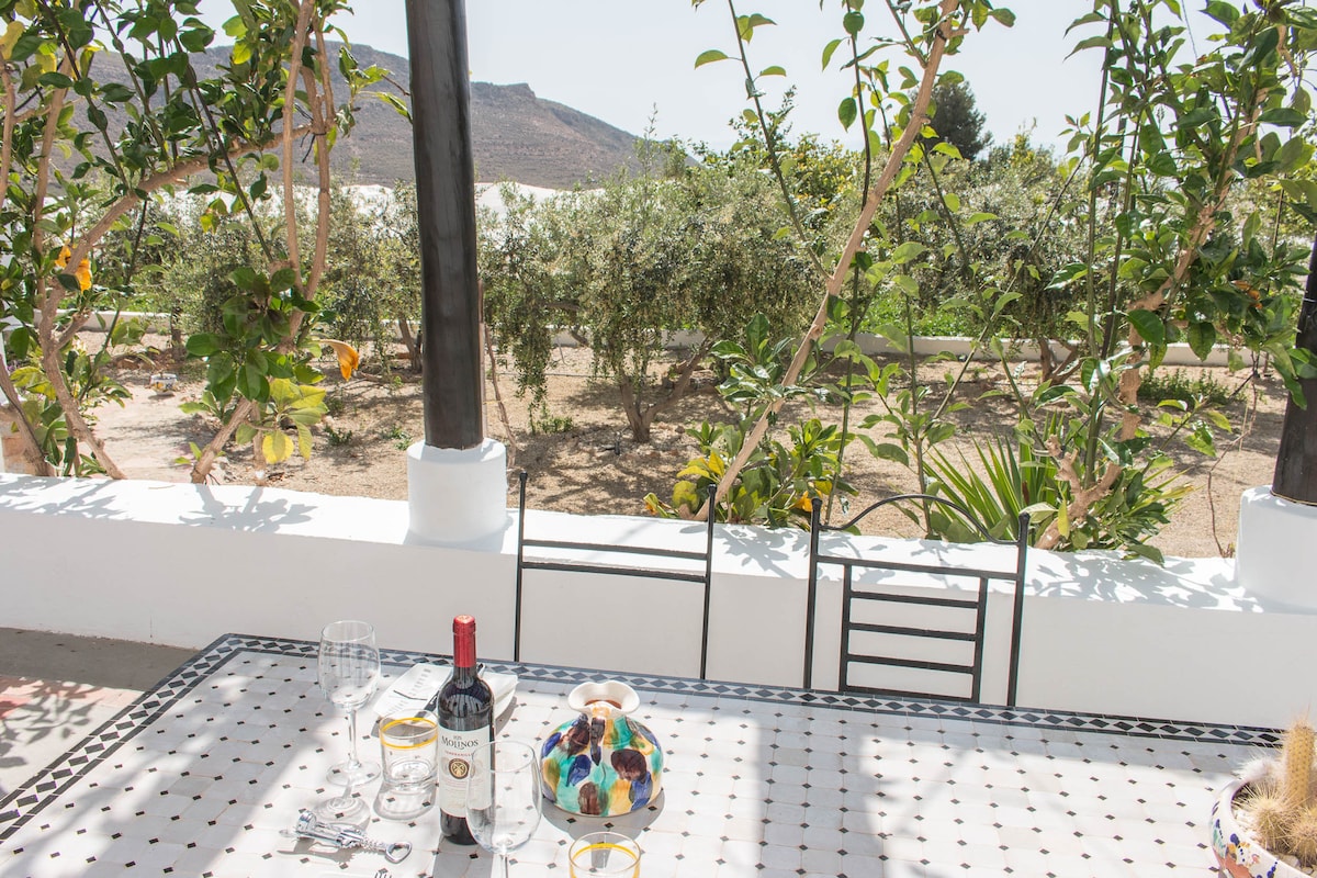 Pure nature and pristine beaches. Andalusian farmhouse next to the Mediterranean Sea, 4km from the best beaches of the Cabo de Gata Natural Park. Starry nights and sunbathing all year round. A natural paradise to disconnect. Off-grid eco-friendly cottage with solar energy that can provide air conditioning and a heat pump during sunny hours. There is an independent studio on the same property also for vacation rental with privacy for all guests.