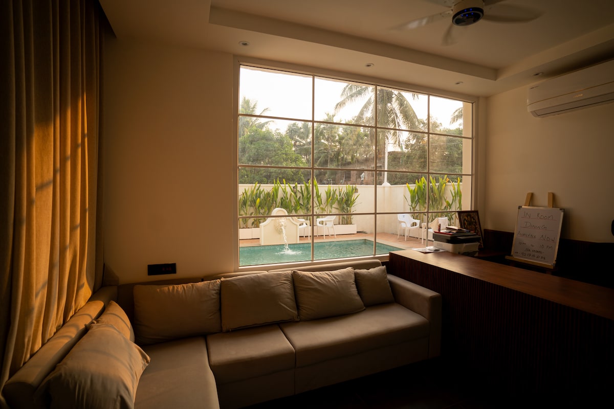 Set amidst the lush greenery of Korgaon, this stylish villa comfortably hosts up to 10 guests—perfect for unwinding, celebrating special moments, or enjoying quality time with loved ones. ★ Highlights ★ • Private pool and jacuzzi • Free Breakfast • Rooftop terrace with beautiful sunset views • Air-conditioned bedrooms & modern bathrooms • High-speed Wi-Fi ★ 10min from Arambol - 25min from Mopa Airport ★ * Please note we collect a refundable security deposit of Rs.2,000/-!