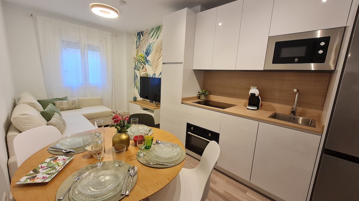 A nice interior and independent apartment with a patio window located in a very quiet area 50 meters from downtown in a family building. Completely renovated. It has a bathroom-shower, a bedroom with a double bed, a large closet, and a living room with an integrated kitchen. Sofa that turns into a single bed for a child or teenager. Ideal for business travelers (good Internet) and vacation (single traveler, couples with 1 child). Registered in the tourist housing registry.