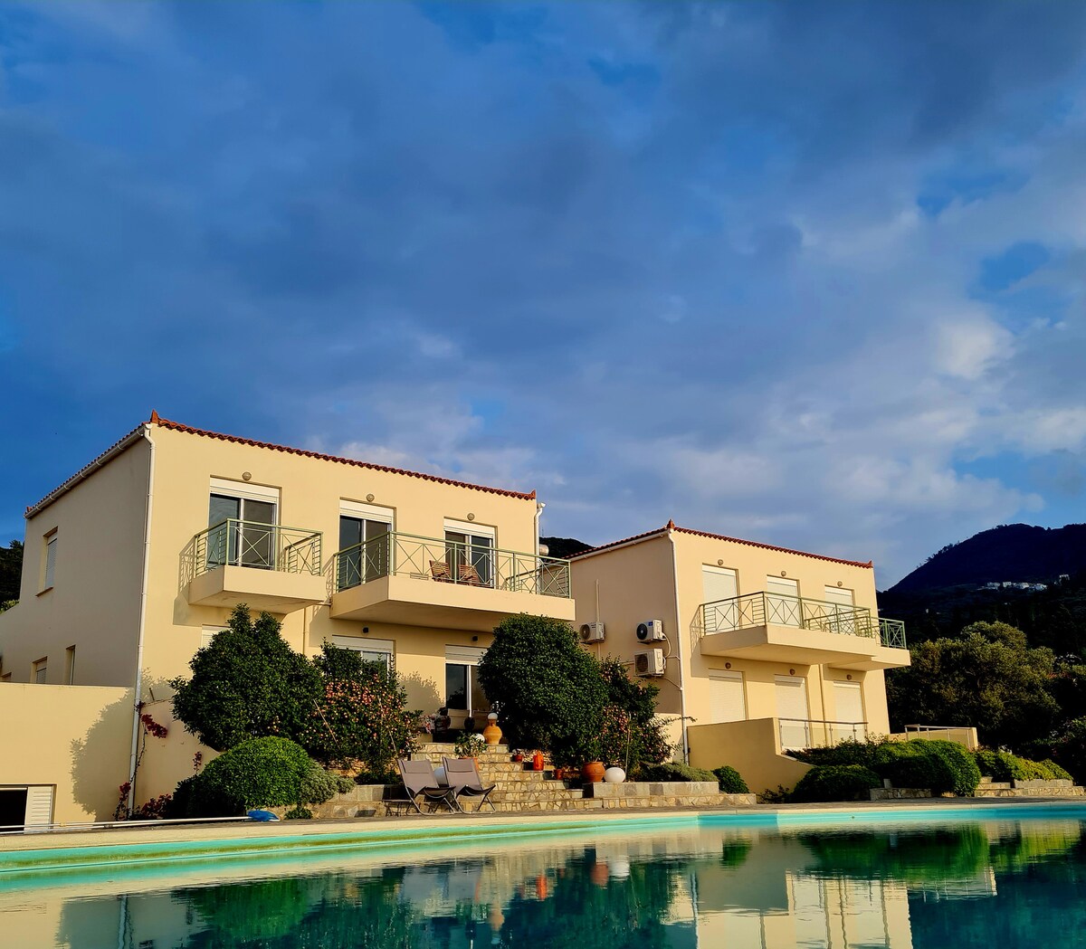 Τα γαλαζοπράσινα νερά της θάλασσας σε συνδυασμό με το πράσινο των ελαιόδεντρων και πεύκων δημιουργούν ένα ανεπανάληπτο σκηνικό για ξενοιασιά και ηρεμία. Η βεράντα με τα κυπαρίσσια είναι το σημείο αναφοράς του καταλύματος. Από αυτή τη βεράντα προσφέρεται απερίσπαστα η μοναδική θέα. Αλλά αυτό που σίγουρα θα σας μείνει αξέχαστο είναι η Ανατολή του ηλίου.Το κατάλυμα προσφέρει στον επισκέπτη την μοναδική εμπειρία να απολαύσει τις διακοπές του.
