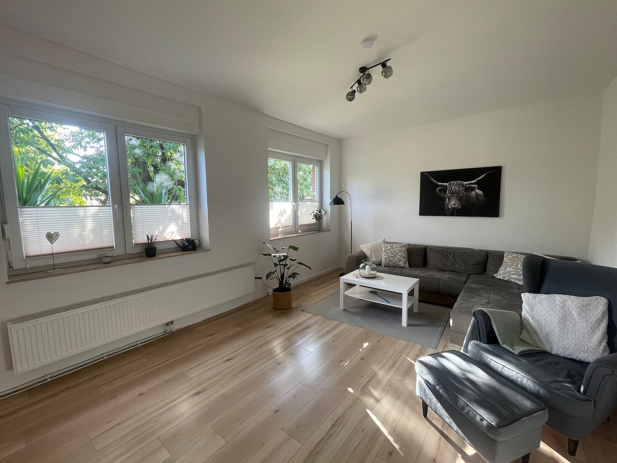 - newly renovated apartment on the first floor of an old farmhouse, - Kitchen-living room with sofa, bedroom with double bed, - If needed, a crib and high chair are available - Bathroom with spacious shower - private sitting area in front of the house/or in the large garden, grill and fire pit can be used. - Parking directly on the farm - Bicycles on request - Wi-Fi / TV - Hannover can be reached in 40 minutes, Bremen in 60 minutes - Close to bakeries and restaurants within walking distance.