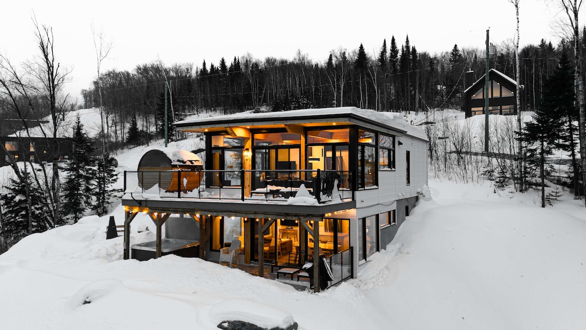 Take advantage of the soothing effect of nature by staying in this contemporary chalet with lots of windows in the heart of the forest. Tremblant is beautiful no matter the season. Dream outdoor destination, you will be 8 minutes from Mont-Blanc and 20 minutes from Mont Tremblant. Whether for hiking, cross-country skiing, snowshoeing or snowmobiling, trails are easily accessible in all directions. Without forgetting the famous P'tit Train du Nord 3 minutes away.