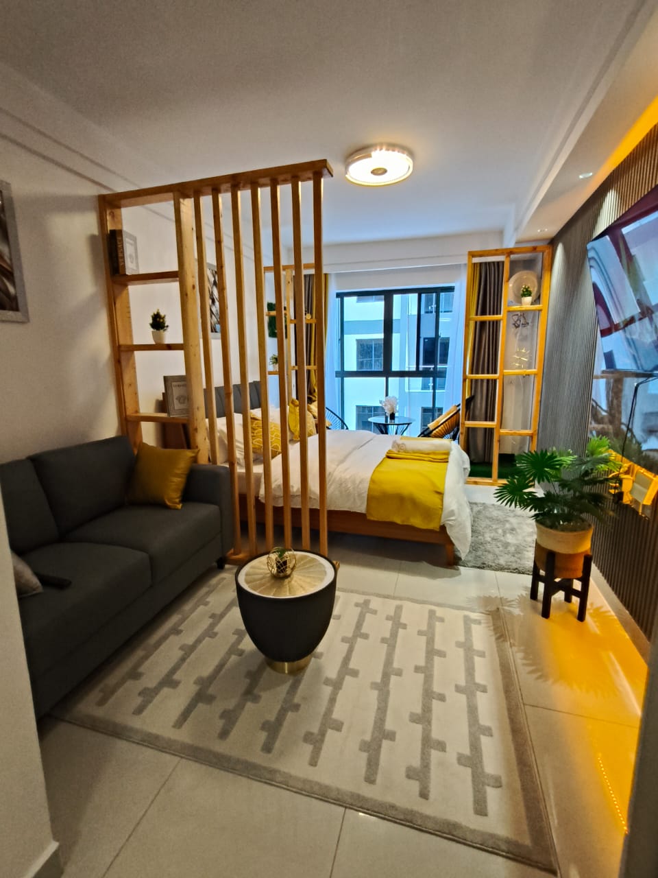 Narari Luxe Aparatment has a style all its own.Just 10 mins from JKIA, the apartment blends modern comfort with stunning views of the Nairobi National Park. Enjoy your mornings spotting giraffes, lions,deers, ostriches and more wildlife or unwind with scenic sunsets. Watch passing trains, relax at the pool, gym, kids’ play area, or garden, and access onsite shops with ease. With high-speed lifts and a serene setting, it’s perfect for flight layovers or longer stays, luxury and convenience in one