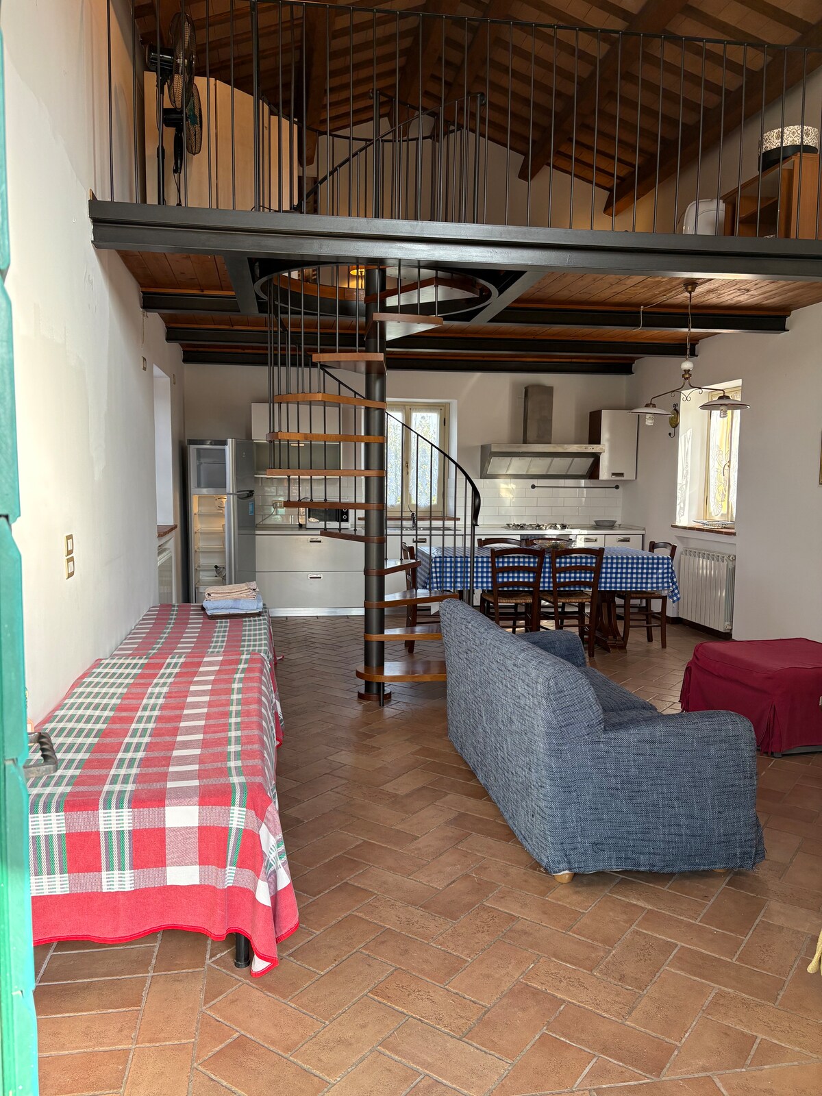 Enjoy a stylish vacation in this space enclosed within a historic building overlooking the square overlooking the sea from where it is possible on clear mornings, beyond the blue horizon of the sea, to see the profile of Croatia. The apartment is spread across two floors. the entrance, kitchen and living room make up a single space connected by a staircase to the upper floor where there are two double bedrooms and the bathroom.