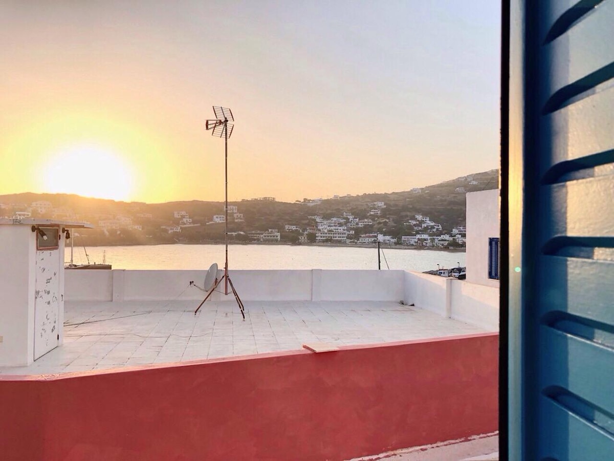 Renovated in 2024, new beds, mattresses, bathroom with shower, flooring, windows, etc. , in walking distance from 2 of the most captivating beaches of Andros island and the lively centre of Batsi town.Can be rent with adjacent apartment (seen on my profile) for big companies for up to 9people! The apt. lies in a big plot with private garden, offers all the facilities necessary to feel like home, and a big private terrace with breathtaking view to Batsi Bay and the Aegean sea.