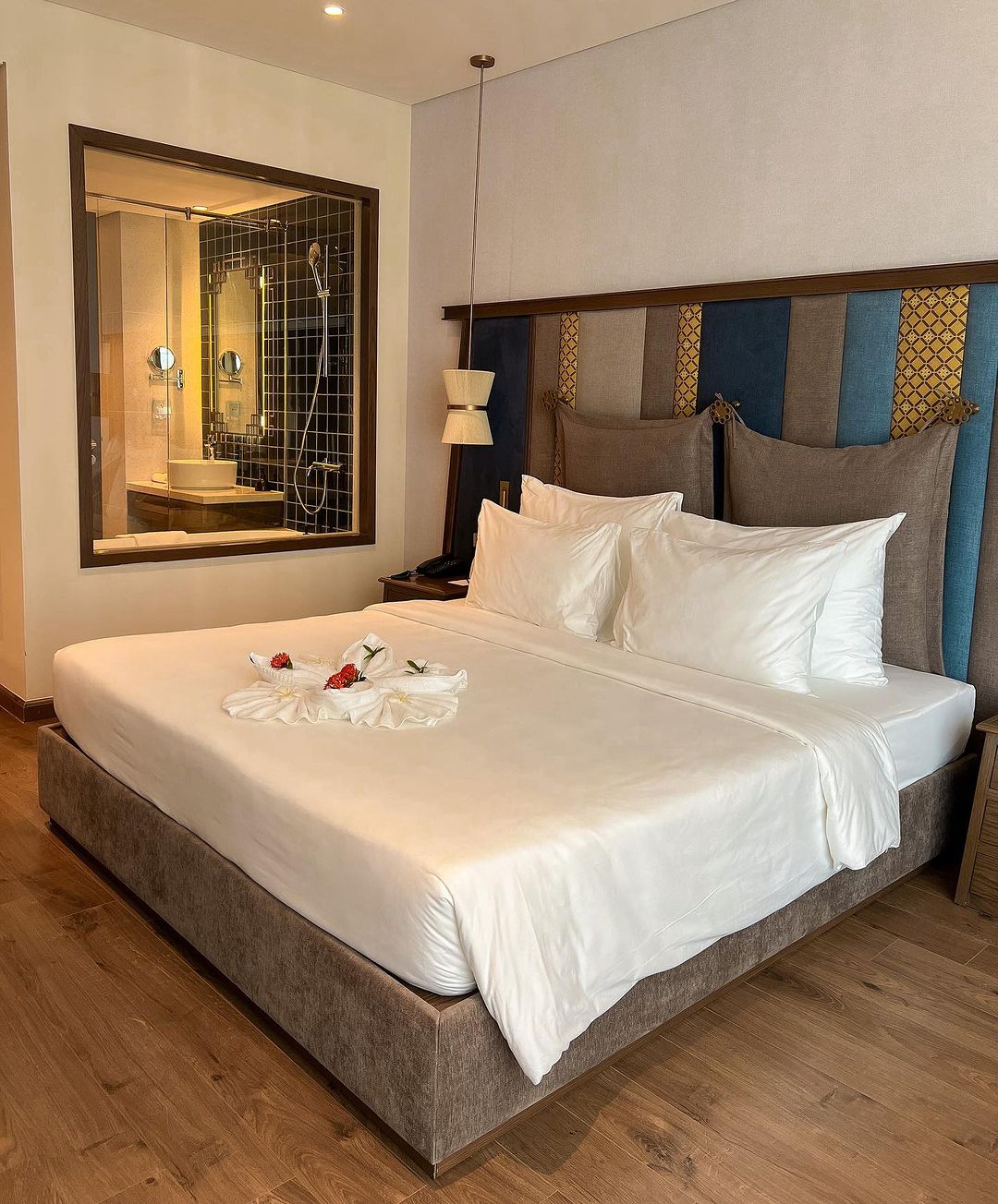 Welcome to Apec Mandala Mũi Né, where luxury meets tranquility in one of Vietnam’s most breathtaking coastal destinations. Each room thoughtfully designed to provide ultimate comfort while embracing the beauty of the surrounding nature. The interiors feature a harmonious mix of modern aesthetics and traditional Vietnamese elements, creating a cozy yet luxurious ambiance. Floor-to-ceiling windows allow natural light to flood the space, panoramic views of the turquoise sea, and lush landscapes.