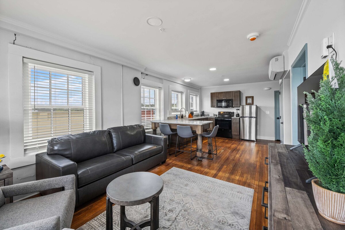 located at 109 Arch Street in downtown Marion, South Carolina, is a fully furnished apartment that offers all the amenities of home -and more. Housed in a historic building in the heart of the Pee Dee, The Loft has charming character with exposed brick walls and original hardwood floors. Offered as a nightly rental, your experience begins as you're greeted with gas lanterns and continues inside where you'll find our 1,000 square foot living space