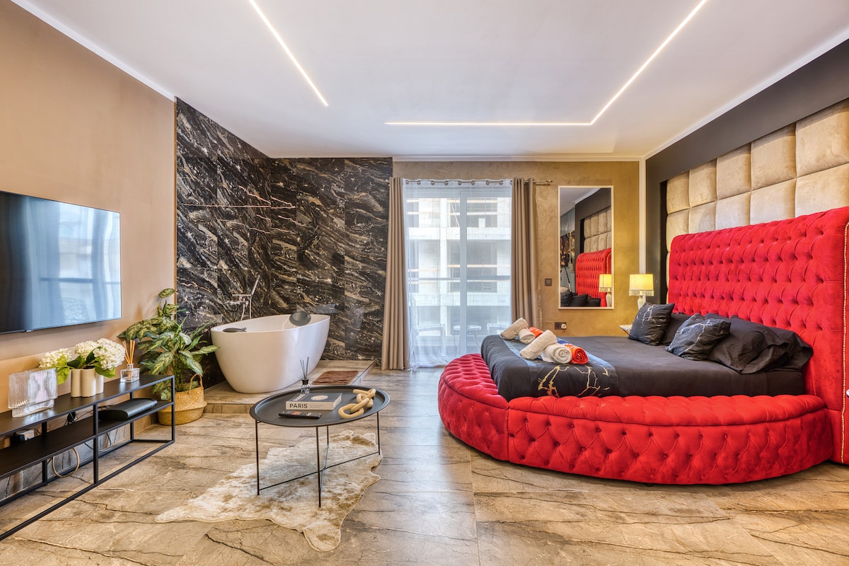 Escape to Mercury 2401 — a romantic studio on the 24th floor of Mercury Tower. Nestled in the corner, it offers stunning skyline views of Portomaso, Sliema, St. George’s Bay, and Dragonara. Soak together in your private two-person Jacuzzi, dine in with a fully equipped kitchen, and unwind on a plush double bed. A sofa by the Jacuzzi converts into a single bed for added comfort. Intimate. Modern. Unforgettable.