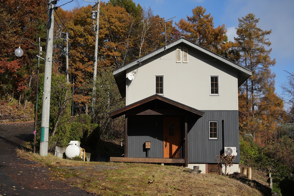 This is a house with a superb view overlooking Lake Nojiri. There are several ski slopes (Myoko, Kurohime, and Masao), about 15-20 minutes away, making it a perfect base for winter sports. Enjoy a wood-burning sauna and a stunning water bath. There are no private houses around, so you can also watch music and movies with loud noise. Because it is a house nestled deep in the mountains, we do our best, but there are insects during the warmer months.It snows a lot in winter.In autumn, the leaves are dancing. You must also adjust the fire in the wood stove yourself. It's never an easy home to live in, but with a great view and experience. There is a full counter kitchen with stunning views and condiments and cookers so you can enjoy cooking.(No BBQ equipment)
