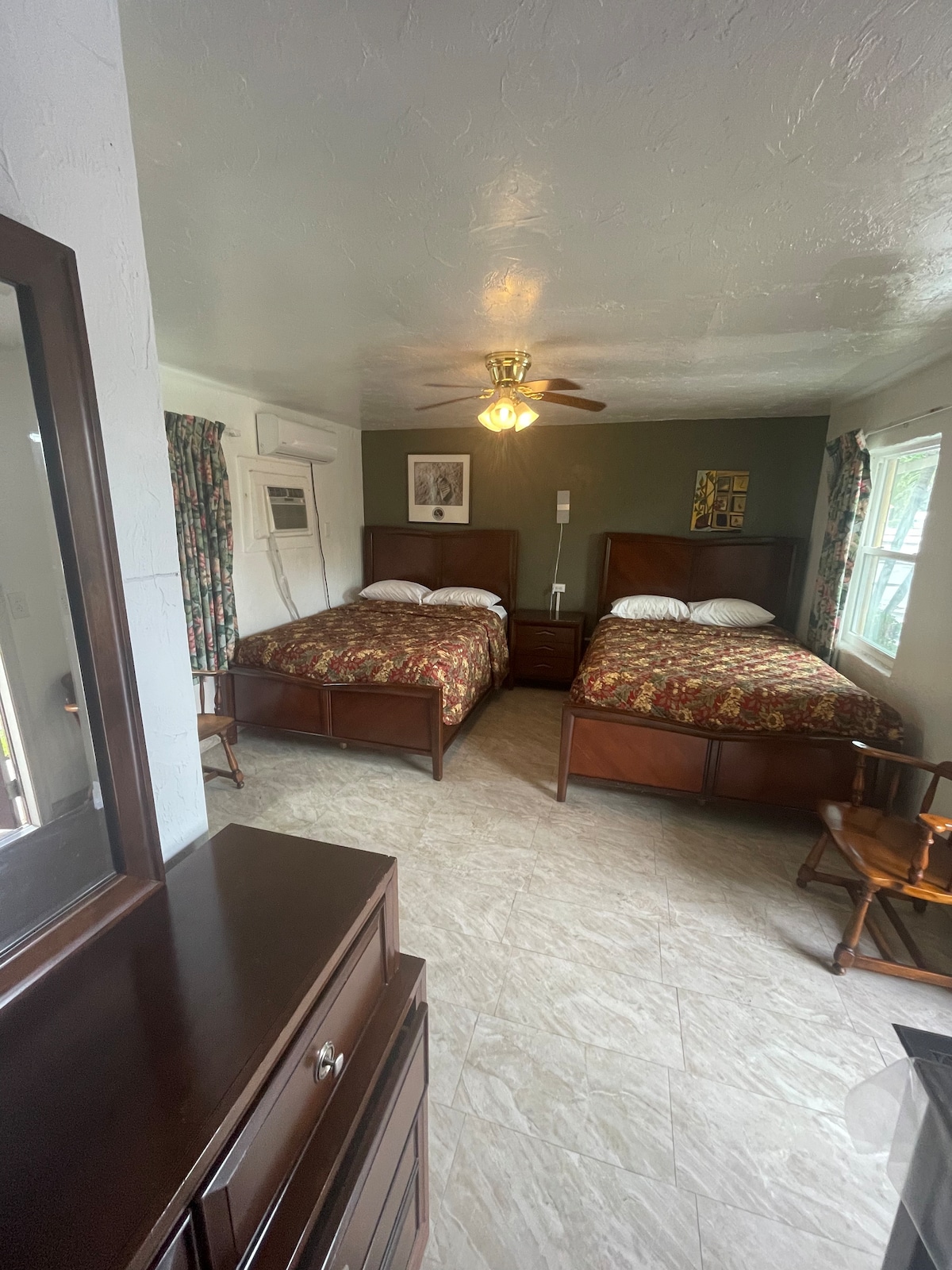 Our island paradise sustained significant damage in September 2022 with the landfall of Hurricane Ian. Since this time, our community has come together, and continue work hard towards a full recovery. Flamingo Inn started slowly reopening the property to our guests. Our first unit 102 is a studio room equipped with a king size bed, private bathroom and a kitchenette with mini fridge, microwave and coffeemaker. The patio is overlooking the back of the property. Beach access is available.