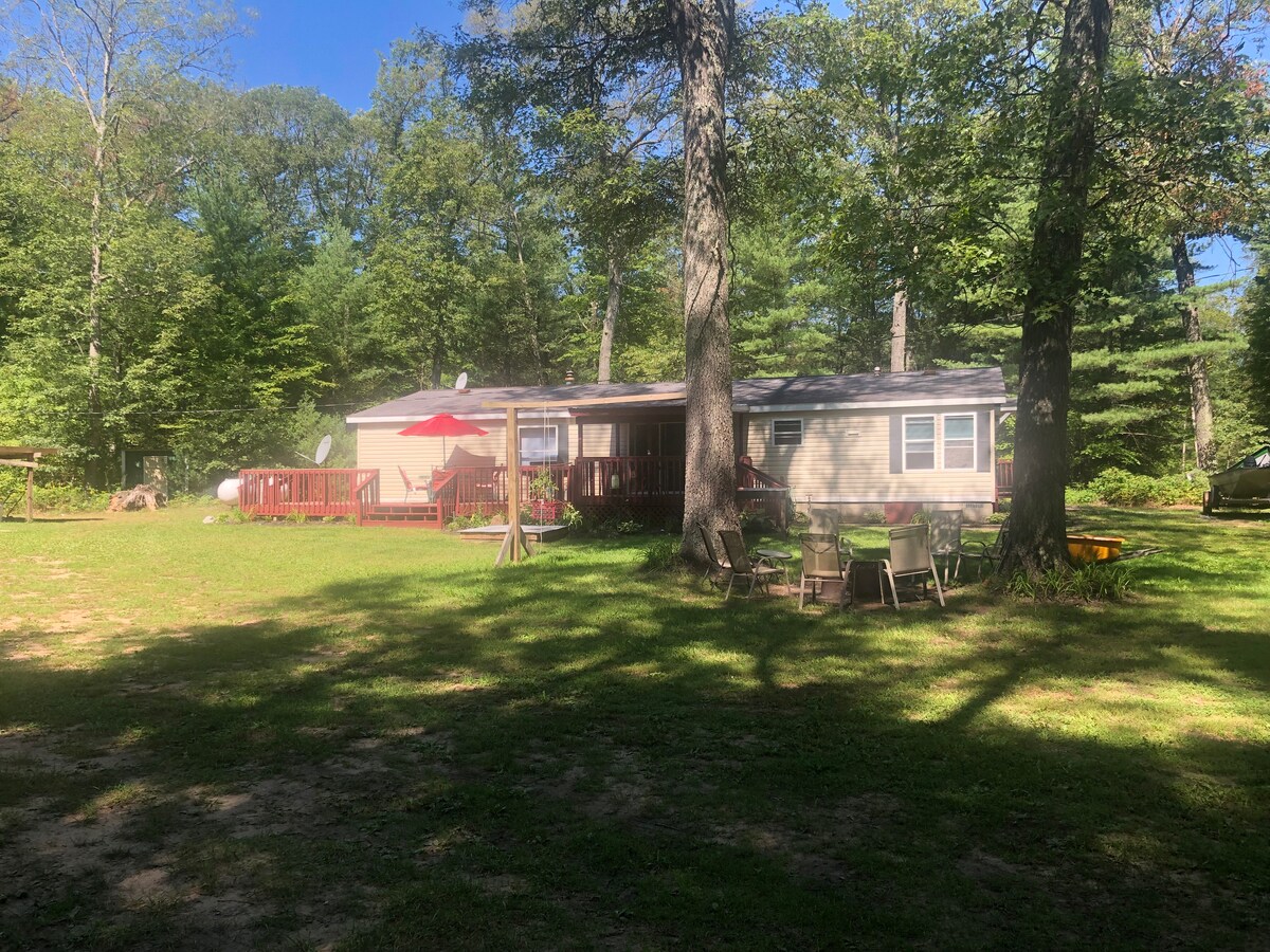 It's time to relax and get away from it all! Enjoy your stay at this cute and clean vintage/retro cottage with plenty of room to sleep up to 5 people. Home is situated on the private channel which leads out to 171 acre all-sports Diamond Lake. 5 Kayaks and 1 SUP board are waiting for you! Charcoal and gas grills. Fire pit (firewood provided)! Bicycles also available. Check out the extensive VHS collection. Easy access to many off road trails. No Wifi, it's time to unplug!