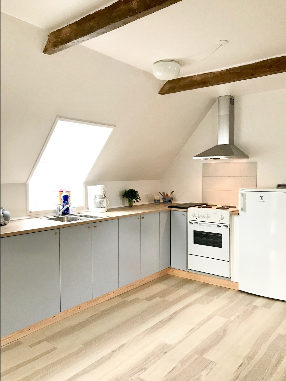 Charming 1-bedroom apartment on the 1st floor of a private house. The apartment is located in a small village in Midtfyn, a few kilometers from shopping, only a quarter of an hour from Svendborg and 20 minutes from Odense on the nearby highway, which is not a problem. The view shows the scenic side of Funen just 5 km from Egeskov Castle and a few hundred meters from fields, forests and a small river. The apartment has a private bathroom with washing machine, cozy kitchen with small oven, hobs and dining area, as well as a living room with TV, double bed and pull-out sofa.