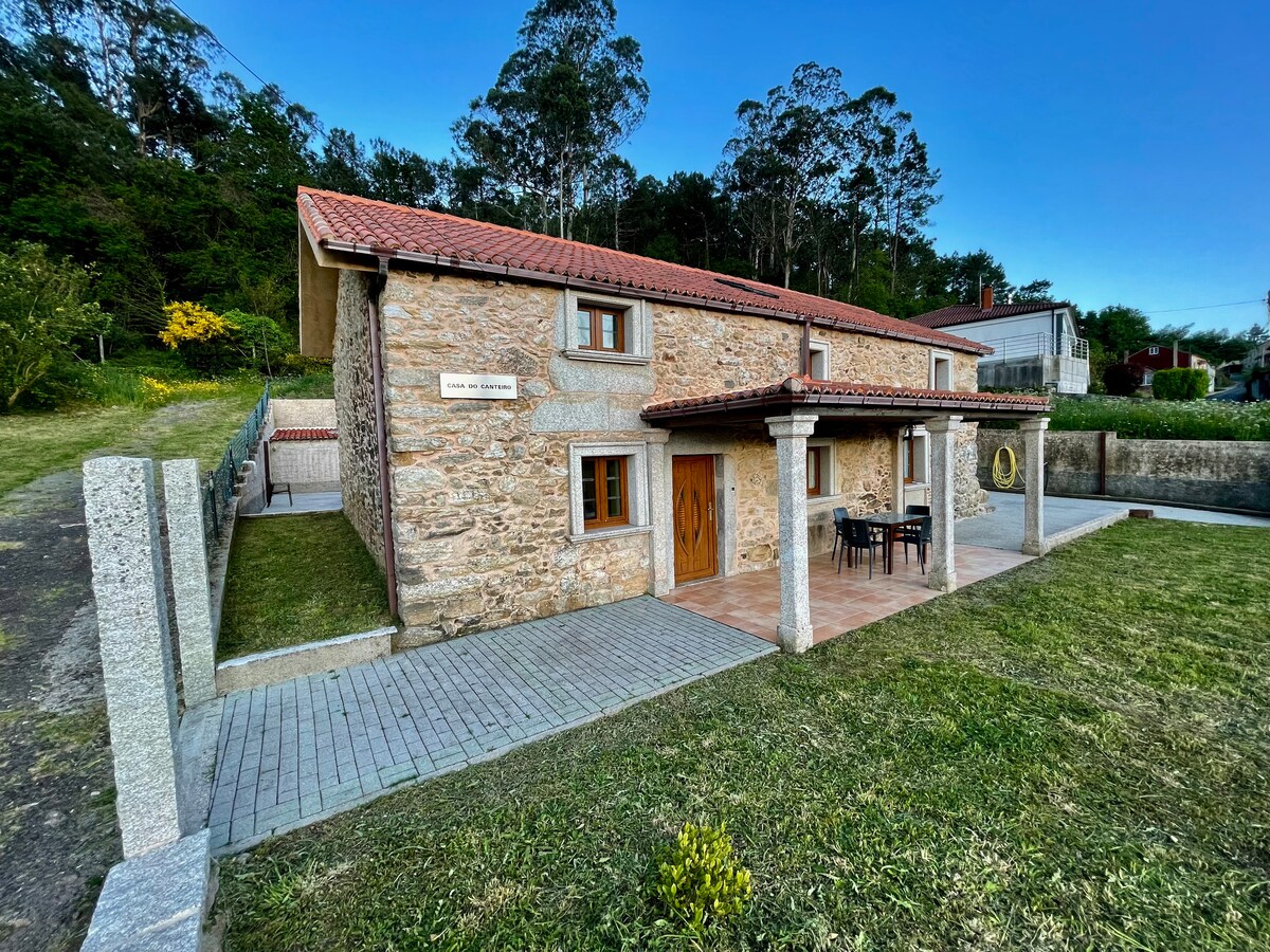 VUT-CO-008619 Cozy stone cabin with large garden 10 minutes from Outes. The house sleeps two people. We are honey producers, so it is common to see some bees in the garden. We inform you of this in case there are possible guests allergic to their sting.